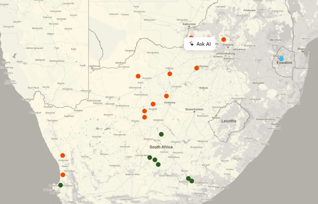 Anthem’s Northern Cluster (420MW), located near the Karoo towns of Murraysburg and Richmond, comprises 3 x 140MW wind farms: Umsinde, Khangela and Ishwati Emoyeni. Each wind farm consists of 32 x Vestas V163 4.5MW wind turbines. Construction commenced in 2024, and commercial operation is expected to begin in Q4 2026.